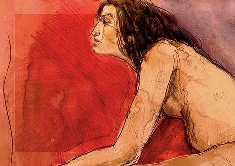 All following artworks created by Michèle Meister based on poems by Boris Pfeiffer, which were first exhibited at their joint exhibition in Berlin, 2024 titled 'Nicht aus Adams Rippe' ('Not from Adam's Rib'), along with all encaustics (original drawings and sketches on waxed sheets), are available for purchase directly from the artist.