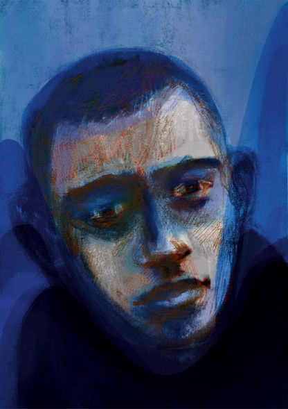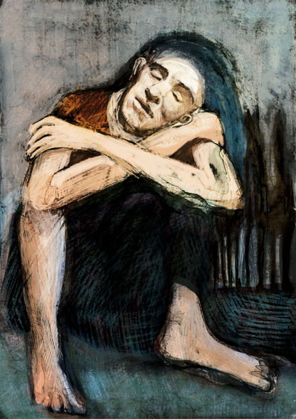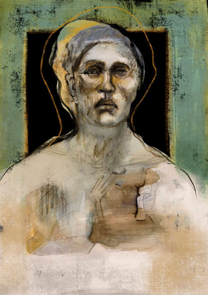 All following artworks created by Michèle Meister based on poems by Boris Pfeiffer, which were first exhibited at their joint exhibition in Berlin, 2024 titled 'Nicht aus Adams Rippe' ('Not from Adam's Rib'), along with all encaustics (original drawings and sketches on waxed sheets), are available for purchase directly from the artist.
